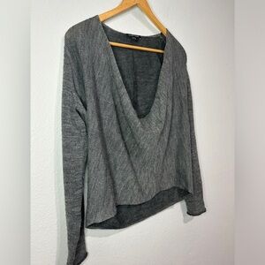 Eileen Fisher drape neck sweater with rolled hem sleeves. Alpaca/merino wool/nylon blend. Classy and a great piece to dress up or down. Women’s medium.