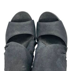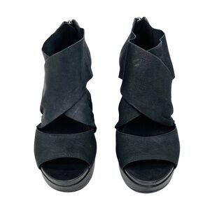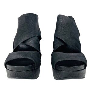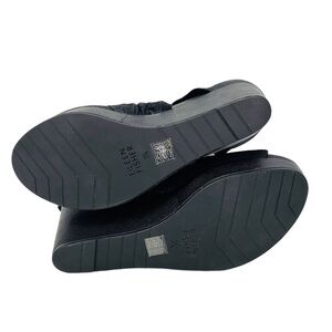 Eileen Fisher Draw Draped Black Nubuck Leather Wedge Heel Sandal Size 7.5 EUC