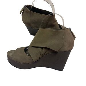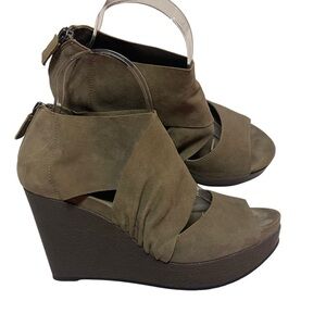 Eileen Fisher Draw Suede Open Toe Olive Platform Wedge Leather Sandals Size 8
