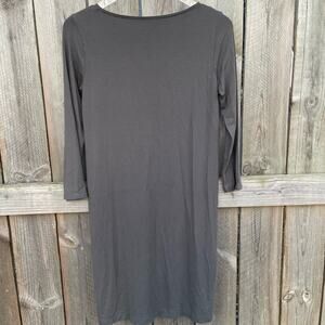 Eileen Fisher Dress Stretch Viscose Jersey V-Neck 3/4 Sleeve Shift Gray Small