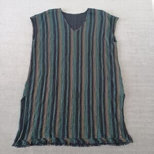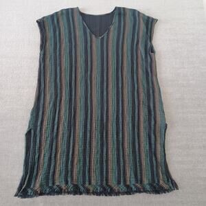 Eileen Fisher Dress Women M Green Striped Gauzy Casual Minimalist V Neck Coastal