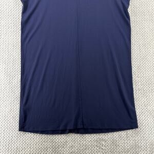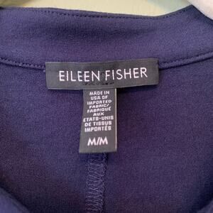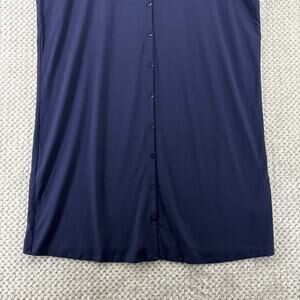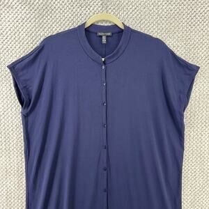 Eileen Fisher Dress Womens M Blue Jersey Stretch Midi Shirt Button Up Cap Sleeve