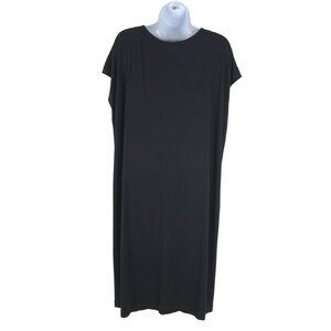Eileen Fisher Dress Women's Medium Black Drape Neck Rayon Blend DR-1216