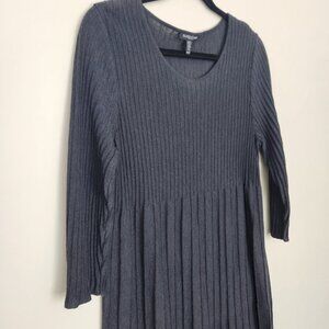 Eileen Fisher Dress Womens PM Wool Pleated Ribbed Knee Length Minimalist Gray