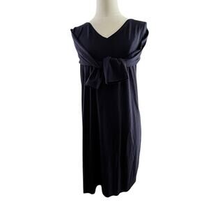 Eileen Fisher Dress XS Petite Navy Blue Tencel Knit V-Neck 3/4 Sleeve Minimalist