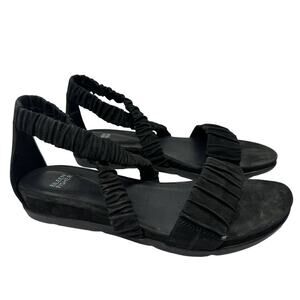 Eileen Fisher Dylan Black Nubuck Demi Wedge Leather Sandal 9