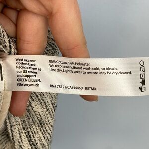 Eileen Fisher Ecru Tweed Round Neck Long Jacket 3/4 Sleeve Sz Large Minimalist