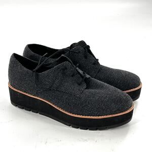 Eileen Fisher Eddy Mélange Herringbone Oxfords 5 NWOT Platform Gray Academia