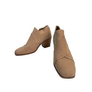 Eileen Fisher Ember Crisscross Nubuck Leather Square Toe Booties Block Heel 9.5