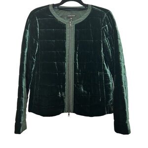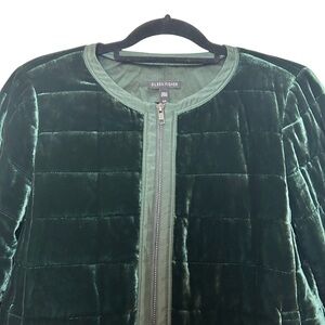 Eileen Fisher emerald green quilted velvet full zipper front fully lined jacket with two front pockets. There is no stretch so please refer to measurements.Super soft and a classic look that will always be in style. Wear with jeans or a little black dress! Size Small Petite Measurements are PTP 19 1/2” length 23” sleeve 25” Retail $448