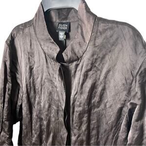 Eileen Fisher Pearlized Plum Brown Mid-Length Shimmer Crinkle Evening Coat, Pockets, Minimalist L