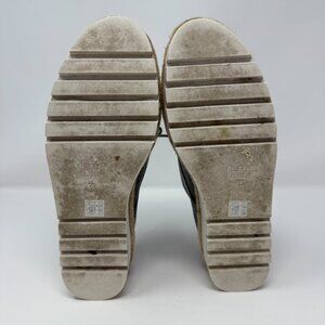The Eileen Fisher Everly Derby Leather Platform Oxford Shoes in silver are a stylish and versatile option for women size 7. These lace-up oxfords feature an almond toe shape, mid-heel height, and jute-wrapped sole accents. The leather upper material and foam insole provide comfort and breathability, making them suitable for casual and travel occasions year-round. With solid silver color and a modern twist on the classic oxford style, these shoes are perfect for various themes from hippie to preppy. The platform wedge heel and rubber outsole offer both style and practicality for the contemporary woman.