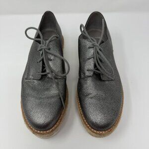 Eileen Fisher Everly Derby Leather Platform Oxford Shoes Womens 7 Silver Lace Up
