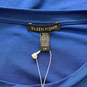 Eileen Fisher tunic in fine stretch Tencel. Crew neckline. Half sleeves. Draped fit. Mid thigh length. Tencel lyocell/spandex. Machine wash.