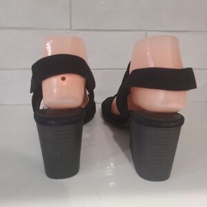 Eileen Fisher Finn Suede Mesh Black Open Toe Sandals Size 8.5 Comfort