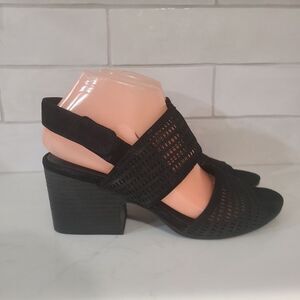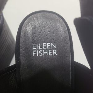 Eileen Fisher Finn Suede Mesh Black Open Toe Sandals Size 8.5 Comfort