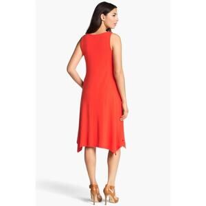 Eileen Fisher Firefly Cowl Neck Viscose Jersey Red/Orange Dress Size Small