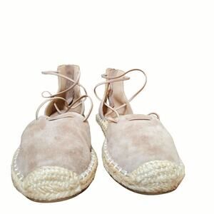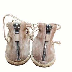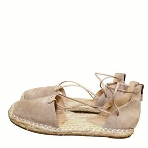 Eileen Fisher Flat Elastic Zip Back Espadrille Sandals Tan Nubuck Women Size 6.5