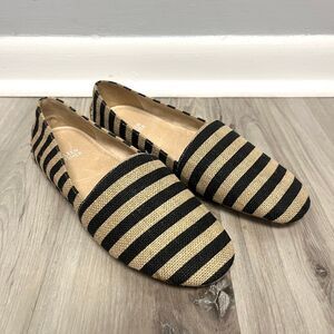 Eileen Fisher Flats Women’s 8.5 Black & Tan Striped Burlap Driver Loafer New