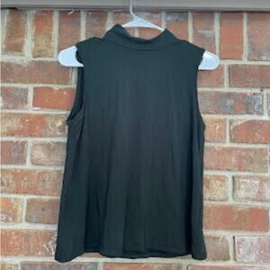 Eileen Fisher Women's Forest Green Silky Mock Neck Stretchy Sleeveless Top XXS