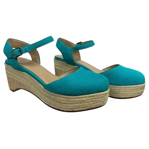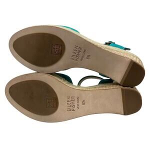Eileen Fisher Form Suede Espadrille Wedge Sandals Teal Size 6.5 Beach Boho Chic