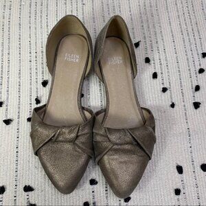 Eileen Fisher Suede D'orsay Twisted Metallic Flat