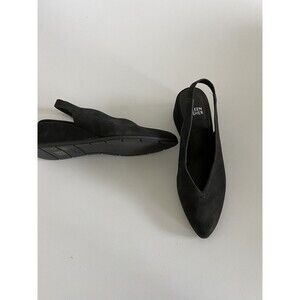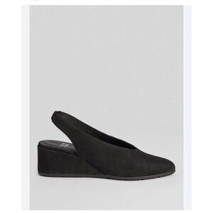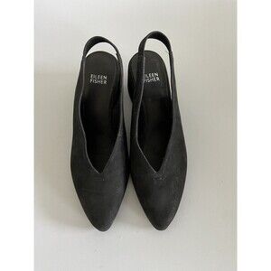 Eileen Fisher Gatwick Slingback Nubuck Shoes 6.5 Black Leather Block Heel New