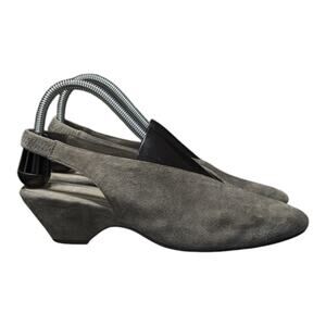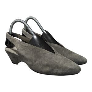 Eileen Fisher Gatwick Slingback Pumps Suede Gray Pump Heels Womens 8 Leather
