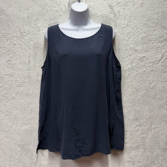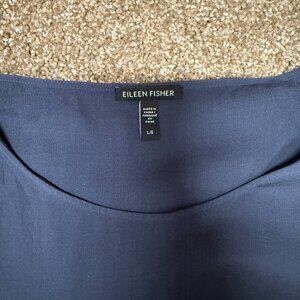 Eileen Fisher Georgette Silk Crepe Tank Top Womens Large Navy Blue Sophisticated