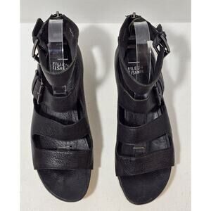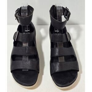 * Eileen Fisher Gladiator Sandals Shoes 7.5 Strappy Leather Black $225