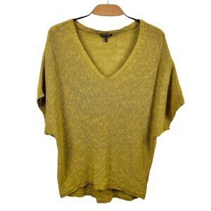 ** Eileen Fisher Gold Melange Linen Deep V Neck Slub Short Sleeve Sweater Size M