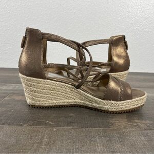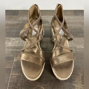 Eileen Fisher Gold Sparkle Leather Wedge Espadrille Sandals