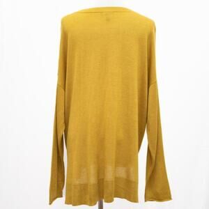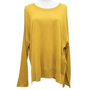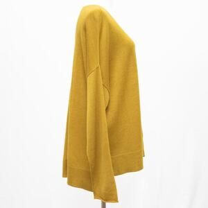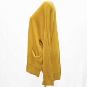 Eileen Fisher Gold Wool Blend Crew Neck Sweater With Pocket Size Medium