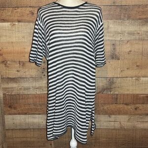 Eileen Fisher Graphite Organic Linen Knit Stripe Round Neck Tunic size Large