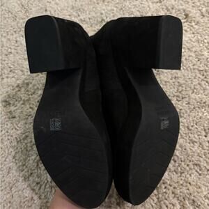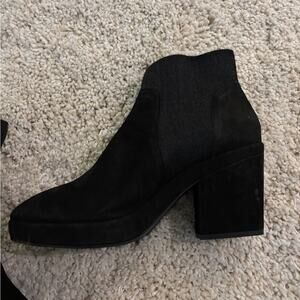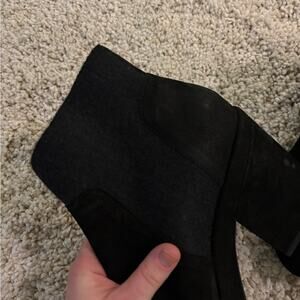 Eileen Fisher chunky black/gray comfy booties with block heel. Material has some stretch to it while you put your foot it, great preowned condition!