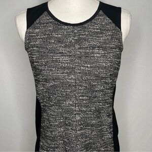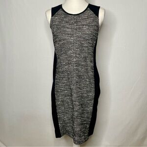 Eileen Fisher Gray Black Tweed Contrast Panel Dress XS mini houndstooth