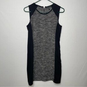 Eileen Fisher Gray Black Tweed Contrast Panel Dress Size XS mini houndstooth Women