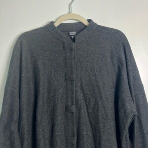 Eileen Fisher Gray Button Up 100% Wool Lightweight Minimalist Coat Cardigan