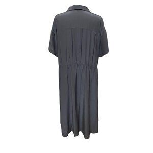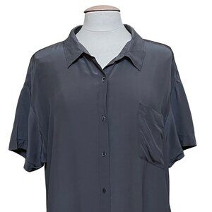 Eileen Fisher Gray Crepe High Low Button Up Dress Tunic 100% Silk Quiet Luxury L