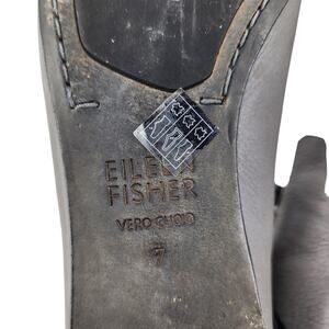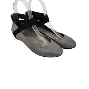 Eileen Fisher Gray Leather Black Strappy Padded Footbed Ballet Flats Size 7