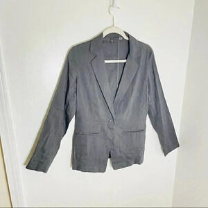 Eileen Fisher Gray Linen Blend Single Button Peplum Blazer Jacket