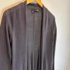 Eileen Fisher Gray Long Length Open Front Linen Blend Cardigan - size Small