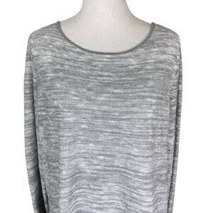 Eileen Fisher Gray Long Sleeve Knit Organic Cotton Linen Blend High Low Shirt