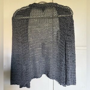 Eileen Fisher Gray Metalic 3/4 Sleeves Open Front Cardigan Size Small