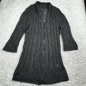 Eileen Fisher Gray Metallic Knit Cardigan Sweater