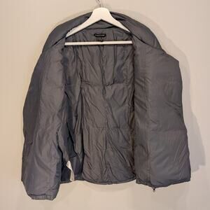 Eileen Fisher Gray Quilted Puffer Jacket Asymmetric Zip High Collar - Size S