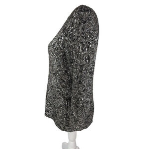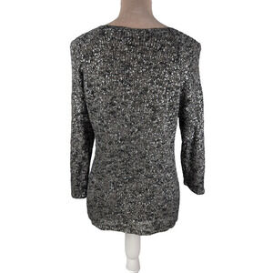 Eileen Fisher Gray Silver Foil Linen Viscose Chain Knit Sweater Top PL P L