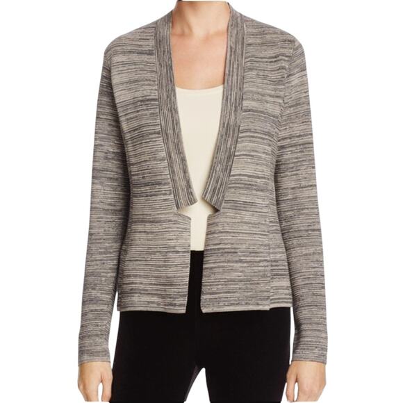 Eileen Fisher Gray Space Dye Notch Collar Open Front Cardigan Sweater