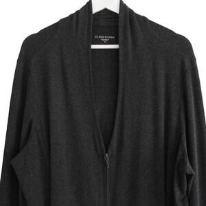 Eileen Fisher Gray Stretch Jersey Zip Front Long Sweater Jacket XL