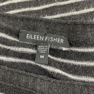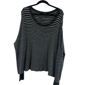 Eileen Fisher Gray Striped Lightweight Knit Sweater Scoop Neck Slouch Medium.